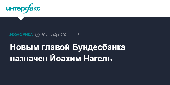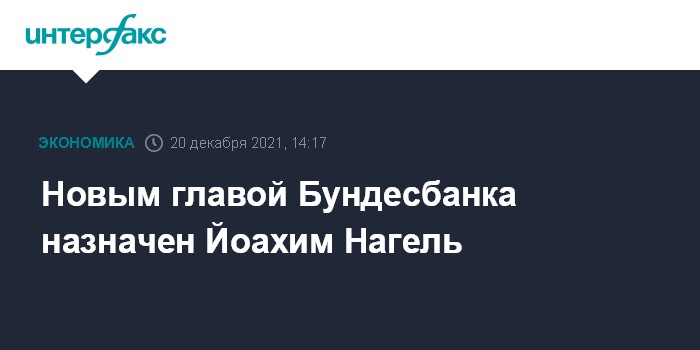 Москва. 20 декабря. INTERFAX.RU - Йоахим Нагель станет новым президентом Бундесбанка, сменив на этом посту Йенса Вайдмана. Об этом сообщил министр финансов Германии Кристиан Линднер в своем аккаунте в Twitter.