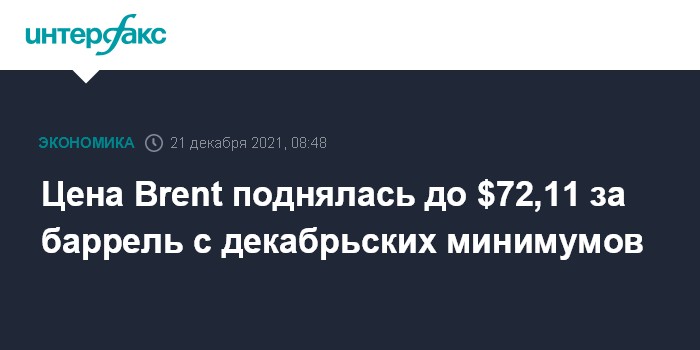 Москва. 21 декабря. INTERFAX.RU - Котировки нефти умеренно растут во вторник на азиатских торгах после резкого падения днем ранее на опасениях о спаде спроса на топливо на фоне распространения нового штамма коронавируса "омикрон".