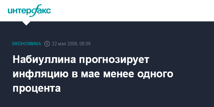 Москва. 22 мая. INTERFAX.RU - Инфляция в мае составит менее 1%, сообщила "Интерфаксу" министр экономического развития Эльвира Набиуллина.