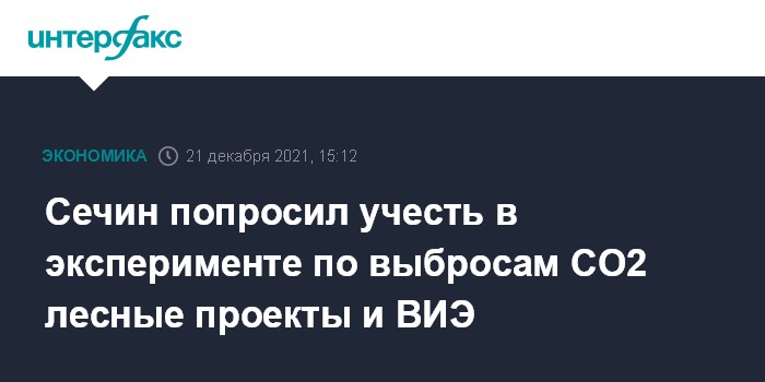 Сечин попросил учесть в эксперименте по выбросам СО2 лесные проекты и ВИЭ