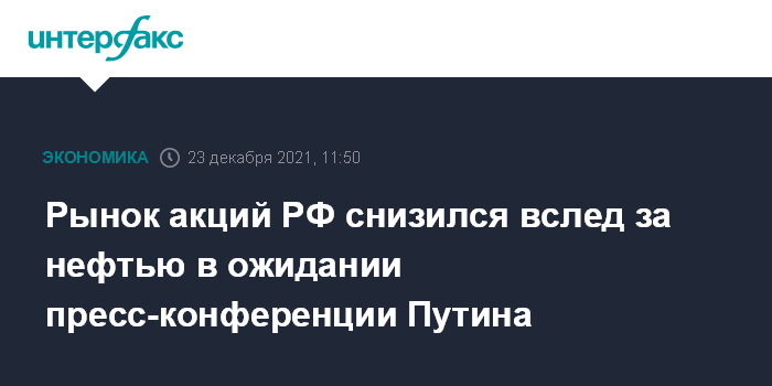 Рынок акций РФ снизился вслед за нефтью в ожидании пресс-конференции Путина