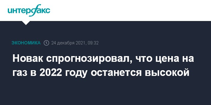 Новак спрогнозировал, что цена на газ в 2022 году останется высокой