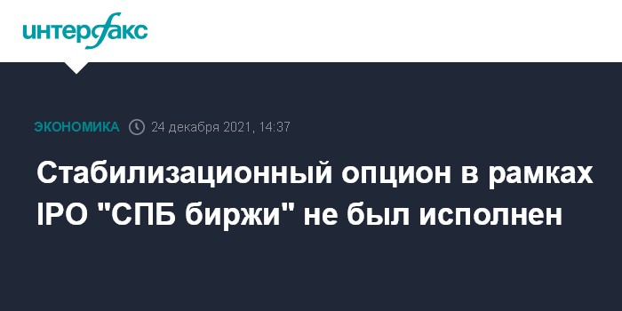 Москва. 24 декабря. INTERFAX.RU - Опцион в рамках IPO "СПБ биржи" не был исполнен, сообщила биржа. Срок его действия истек 21 декабря.