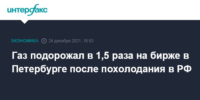 Газ подорожал в 1,5 раза на бирже в Петербурге после похолодания в РФ