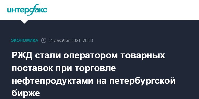 РЖД стали оператором товарных поставок при торговле нефтепродуктами на петербургской бирже