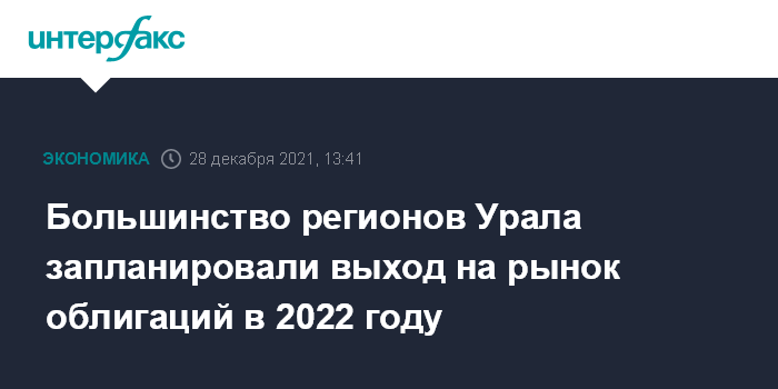 Москва. 28 декабря. INTERFAX.RU - Четыре из шести регионов Уральского федерального округа (УрФО) в 2022 году планируют размещение облигаций на общую сумму до 44 млрд рублей – чуть больше половины первоначального плана на этот год, в котором по факту ни один уральский регион на облигационный рынок не вышел.