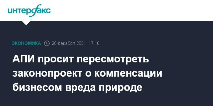 АПИ просит пересмотреть законопроект о компенсации бизнесом вреда природе