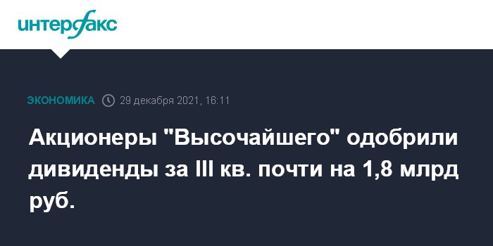 Акционеры "Высочайшего" одобрили дивиденды за III кв. почти на 1,8 млрд руб.