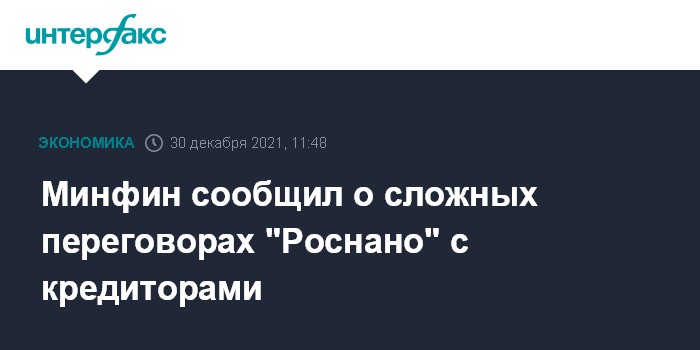 Минфин сообщил о сложных переговорах "Роснано" с кредиторами