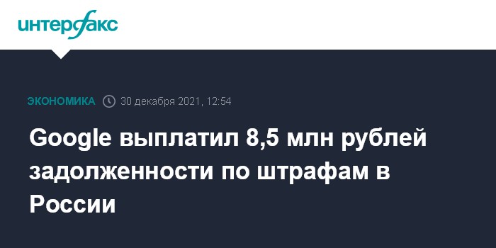 Google выплатил 8,5 млн рублей задолженности по штрафам в России