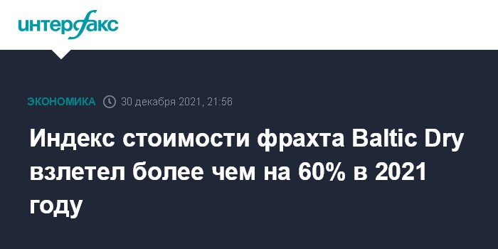 Москва. 30 декабря. INTERFAX.RU - Индекс стоимости фрахта Baltic Dry, отслеживающий цены на морские перевозки насыпных и навалочных грузов по всему миру, по итогам 2021 года увеличился более чем на 60%, отмечает Trading Economics.
