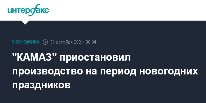 Москва. 31 декабря. INTERFAX.RU - "КАМАЗ" в пятницу приостановил производство автомобилей до 9 января включительно на период новогодних праздников, сообщил "Интерфаксу" представитель компании.
