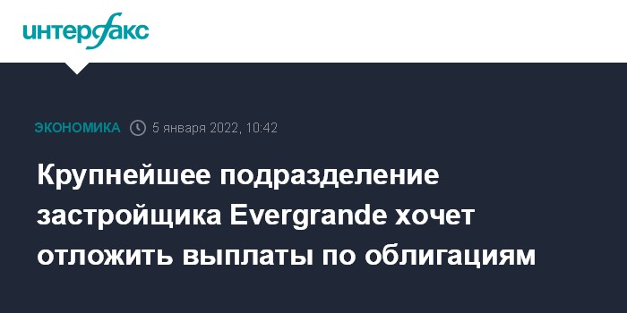 Крупнейшее подразделение застройщика Evergrande хочет отложить выплаты по облигациям