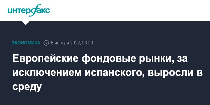 Москва. 6 января. INTERFAX.RU - Европейские фондовые индексы в основном выросли в среду, исключением стал испанский индикатор.