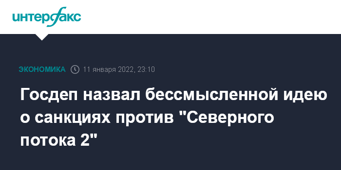 Москва. 11 января. INTERFAX.RU - Звучащая в Конгрессе Соединенных Штатов идея о дополнительных санкциях против "Северного потока 2" не имеет смысла, заявила во вторник замгоссекретаря США Виктория Нуланд.