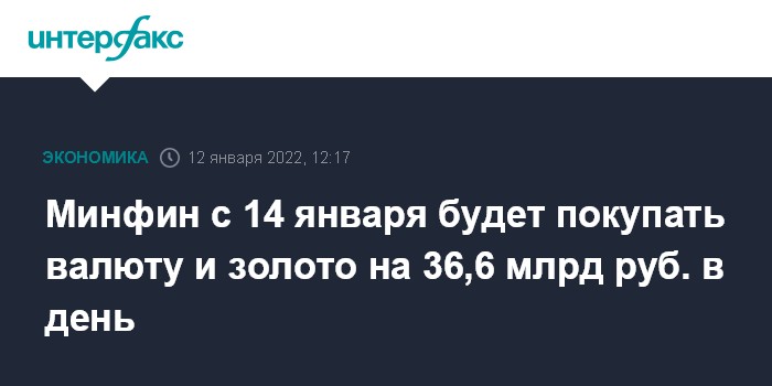 Минфин с 14 января будет покупать валюту и золото на 36,6 млрд руб. в день