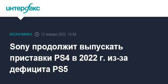 Москва. 12 января. INTERFAX.RU - Японская Sony Group продолжит выпускать игровые консоли PlayStation 4 (PS4) в 2022 году для преодоления дефицита производства PS5, вызванного проблемами в глобальных цепочках поставок.