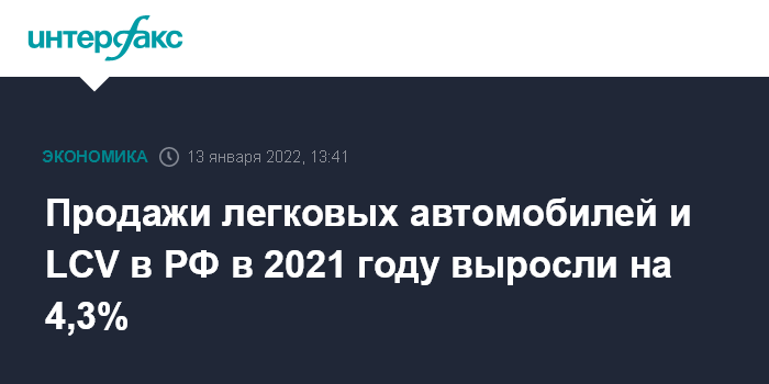 Продажи легковых автомобилей и LCV в РФ в 2021 году выросли на 4,3%