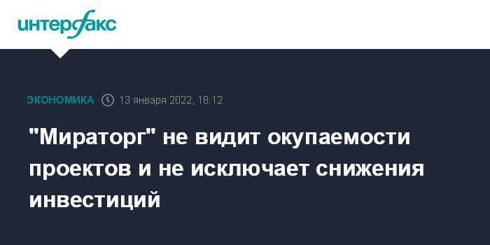 Москва. 13 января. INTERFAX.RU - АПХ "Мираторг", один из ведущих производителей мясной продукции в РФ, не исключает в ближайшие годы снижения инвестиций в развитие компании на фоне роста затрат и госрегулирования рынков АПК.
