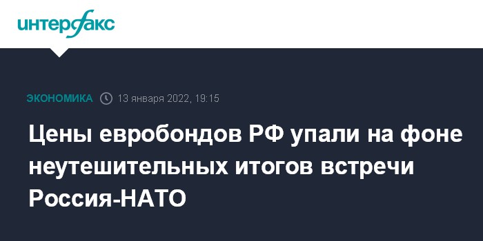 "Сегодня рынок российских еврооблигаций пережил самую серьезную распродажу с начала этого года. Отечественные евробонды и до этого находились под давлением из-за заметного роста базовых процентных ставок в ожидании скорого ужесточения денежно-кредитной политики ФРС США. Но сегодня в секторе US Treasuries наблюдалась некоторая стабилизация ситуации, а вот наши бумаги заметно упали в цене на фоне объявления первых итогов встречи в формате Россия-НАТО, которые оказались весьма и весьма неутешительными для всех российских активов. В моменте инвесторы не обращают внимание на текущее относительно высокое кредитное качество России как заемщика, сейчас ими управляют эмоции и возросшие геополитические и санкционные риски. На рынке довольно много нерезидентов, а для них последние новости крайне негативны, поэтому сейчас мы видим активные распродажи. В результате котировки "длинных" выпусков евробондов РФ с погашением в 2042-2047 годах упали за день на 3,5-4 процентных пункта, и это притом что и до этого ценовые уровни были весьма низкими вследствие падения в начале года. Кредитные спреды заметно расширились, а стоимость пятилетней страховки от дефолта (CDS) евробондов РФ выросла за день почти на 23 базисных пункта - до 160 базисных пунктов", - прокомментировал "Интерфаксу" ситуацию на рынке начальник казначейства Металлинвестбанка Селим Агарзаев.