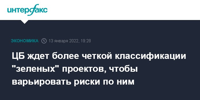Москва. 13 января. INTERFAX.RU - В ЦБ РФ надеются, что правительство предоставит более четкую классификацию "зеленых" проектов, чтобы регулятор мог варьировать риски по ним.
