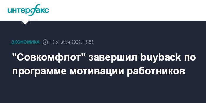 Москва. 18 января. INTERFAX.RU - ПАО "Совкомфлот" завершило программу обратного выкупа акций, которая была запущена в декабре 2021 года. Об этом сообщила руководитель отдела по работе с инвесторами СКФ Александра Мельникова на конференции "Диалог с компанией "Совкомфлот", организованной "ВТБ Капитал Инвестиции".