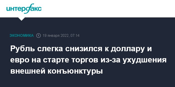 Рубль слегка снизился к доллару и евро на старте торгов из-за ухудшения внешней конъюнктуры