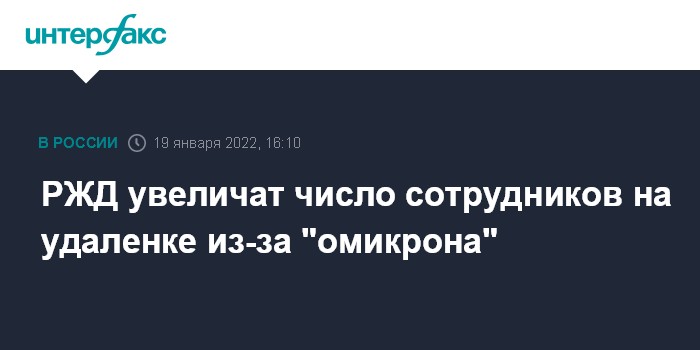Москва. 19 января. INTERFAX.RU - ОАО "РЖД" сообщило, что из-за "омикрона" переведет на удаленку как можно больше сотрудников, не задействованных в процессе перевозок. В первую очередь это затронет работников старшего возраста, а также тех, у кого медицинский отвод от прививок.