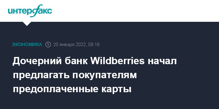 Москва. 20 января. INTERFAX.RU - Дочерний банк Wildberries начал выдавать покупателям предоплаченные банковские карты, сообщается на сайте крупнейшего в России онлайн-ритейлера.