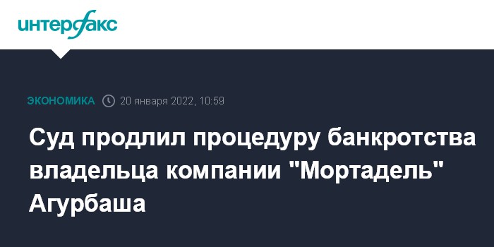 Москва. 20 января. INTERFAX.RU - Арбитражный суд Москвы в среду, 19 января, продлил процедуру реализации имущества владельца компании "Мортадель" Николая Агурбаша на шесть месяцев.