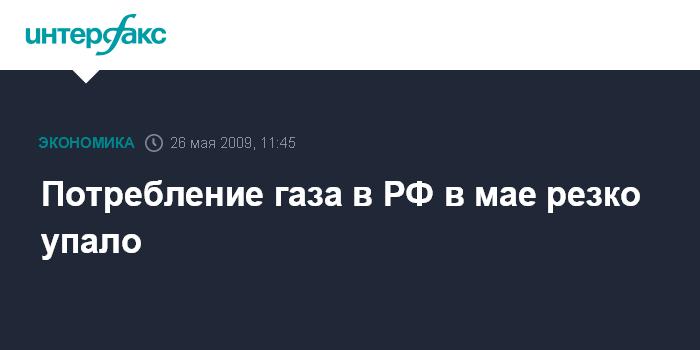 Москва. 26 мая. INTERFAX.RU - Объем потребления газа в России за 20 дней мая 2009 г. населением и коммунально-бытовым сектором снизился на 9% по сравнению с аналогичным периодом 2008 г., промышленностью - на 13%, свидетельствуют материалы ОАО "Межрегионгаз".