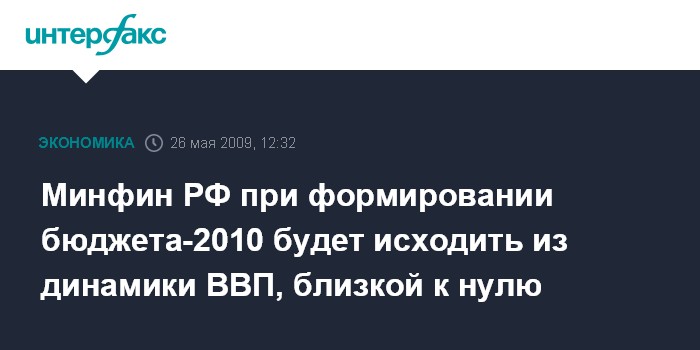 Минфин РФ при формировании бюджета-2010 будет исходить из динамики ВВП, близкой к нулю