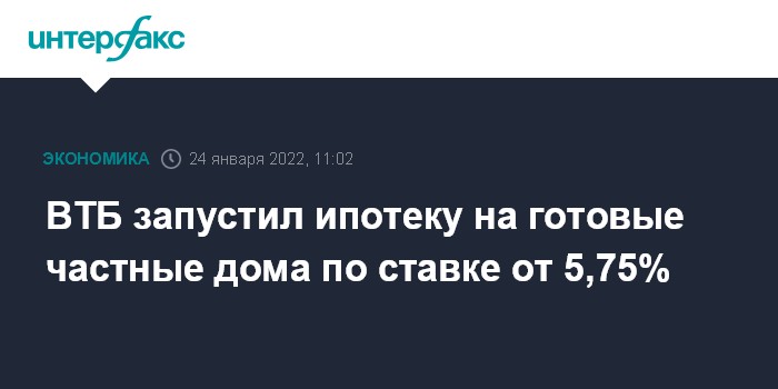 ВТБ запустил ипотеку на готовые частные дома по ставке от 5,75%