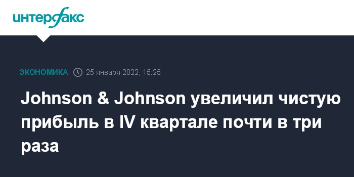 Москва. 25 января. INTERFAX.RU - Американская Johnson & Johnson (J&J), крупнейший мировой производитель товаров для здоровья, увеличила чистую прибыль в четвертом квартале 2021 года почти в три раза, выручку - на 10,4%. Но последний показатель не оправдал прогнозов рынка.