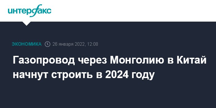 Москва. 26 января. INTERFAX.RU - Газопровод "Союз Восток" через Монголию в Китай может быть запущен в 2027-2028 годах, начало строительства подтверждается в 2024 году, приводит монгольское государственное агентство "Монцамэ" слова вице-премьера Сайнбуянгийна Амарсайхана.