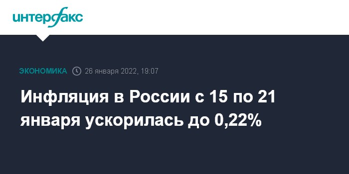 Среднесуточный рост цен за 21 день января 2022 года, по данным Росстата, составил 0,042% (против 0,031% за 25 дней января 2021 года).