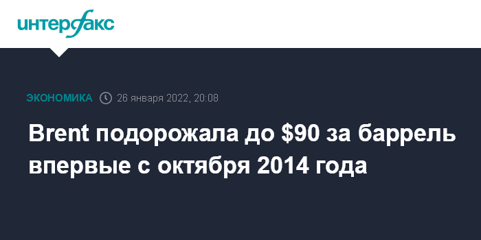 Мартовские фьючерсы на Brent на лондонской бирже ICE Futures по данным на 19:55 по московскому времени подорожали на $1,81 (2,05%) - до $90,01 за баррель. Стоимость марки поднялась выше $90 за баррель впервые с 13 октября 2014 года.