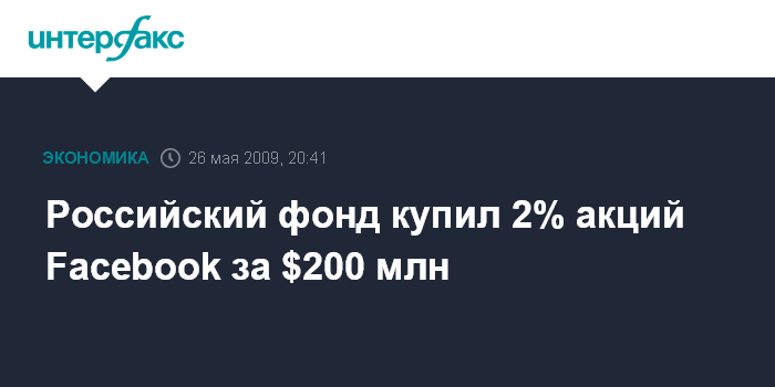Москва. 26 мая. INTERFAX.RU - Российский инвестфонд Digital Sky Technologies (DST) инвестировал $200 млн в привилегированные акции американской Facebook Inc, собственника одной из крупнейших в мире социальных сетей.