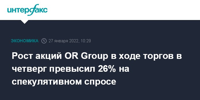 Рост акций OR Group в ходе торгов в четверг превысил 26% на спекулятивном спросе