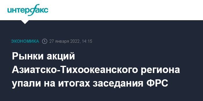 Рынки акций Азиатско-Тихоокеанского региона упали на итогах заседания ФРС
