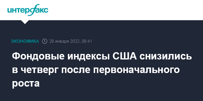 Москва. 28 января. INTERFAX.RU - Американские фондовые индексы завершили снижением торги в четверг после первоначального роста.