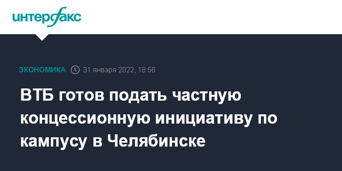 Москва. 31 января. INTERFAX.RU - ВТБ может подать частную концессионную инициативу по проекту межуниверситетского кампуса мирового уровня в Челябинске, следует из сообщения пресс-службы правительства Челябинской области.