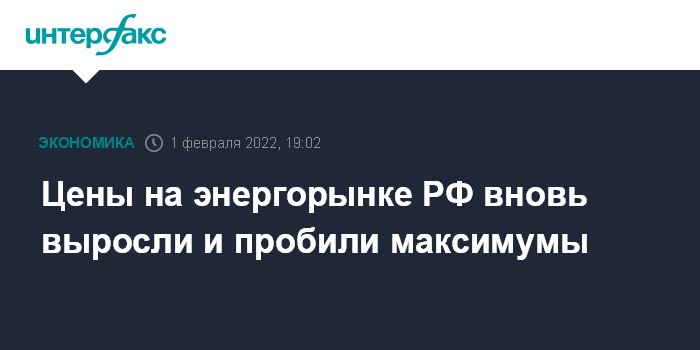 Москва. 1 февраля. INTERFAX.RU - Свободные цены на энергорынке РФ по итогам торгов во вторник с поставкой на среду, 2 февраля, продолжили расти в обеих зонах и вновь обновили суточные максимумы 2022 года: в европейской части РФ и на Урале (первая ценовая зона) они увеличились еще на 1,63%, до 1556,15 руб./МВт.ч, в Сибири (вторая ценовая зона) - на 5,02%, до 1256,59 руб./МВт.ч, следует из материалов с сайта организатора торгов на энергобирже ОАО "АТС".