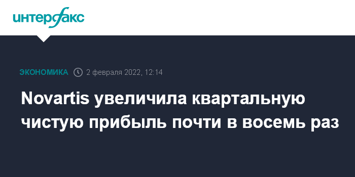 Москва. 2 февраля. INTERFAX.RU - Швейцарская фармацевтическая компания Novartis AG сообщила о почти восьмикратном росте чистой прибыли в четвертом квартале 2021 года из-за продажи доли в компании Roche Holding AG.