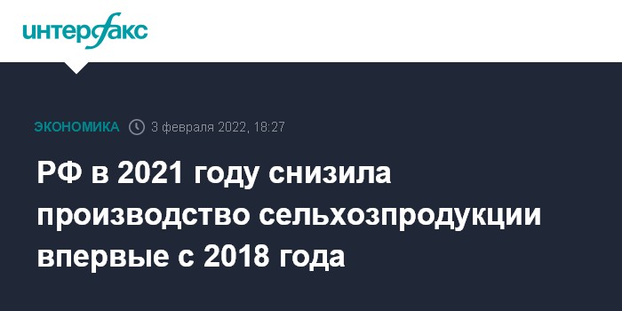 РФ в 2021 году снизила производство сельхозпродукции впервые с 2018 года