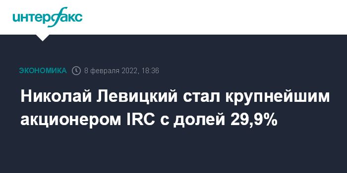 Николай Левицкий стал крупнейшим акционером IRC с долей 29,9%