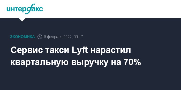 Москва. 9 февраля. INTERFAX.RU - Американский сервис заказа такси Lyft Inc. сообщил, что увеличил выручку в четвертом квартале 2021 года на 70% благодаря росту числа поездок и повышению цен. Показатель составил $969,9 млн против $569,9 млн годом ранее. Эксперты, опрошенные FactSet, в среднем прогнозировали этот показатель на уровне $941,4 млн.