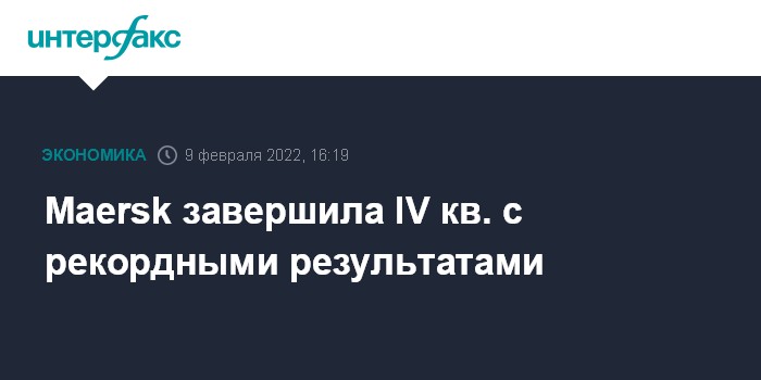 Москва. 9 февраля. INTERFAX.RU - Датская транспортно-логистическая компания A.P. Moeller-Maersk AS завершила четвертый квартал 2021 года с рекордными показателями выручки, EBIT и чистой прибыли на фоне скачка стоимости фрахта в условиях растущего потребительского спроса при сохраняющихся проблемах в цепочках поставок.