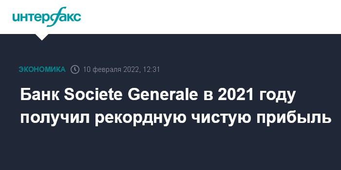Москва. 10 февраля. INTERFAX.RU - Французский банк Societe Generale SA получил чистую прибыль в четвертом квартале выше ожиданий аналитиков, при этом показатель за весь 2021 год стал рекордным.