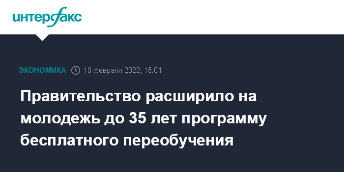 Москва. 10 февраля. INTERFAX.RU - Правительство распространило программу бесплатного переобучения россиян новым профессиям на молодых людей до 35 лет, заявил на заседания кабинета министров премьер-министр Михаил Мишустин.